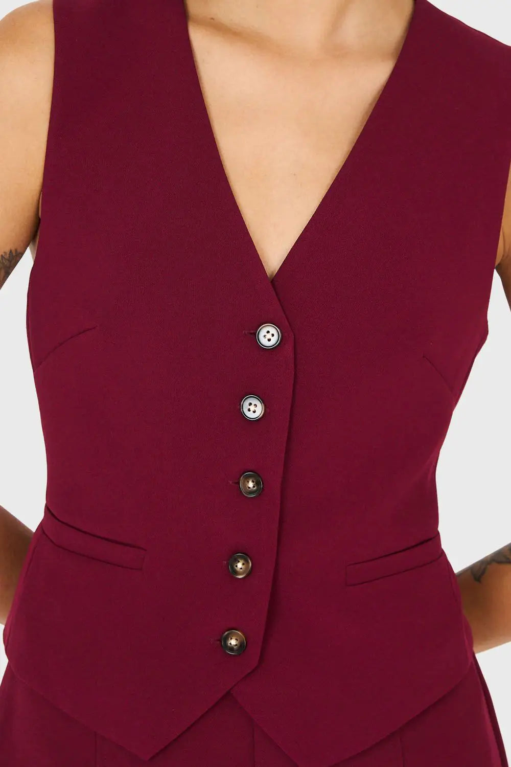 Gilet Mujer 5 Botones Ajustable Burdeo